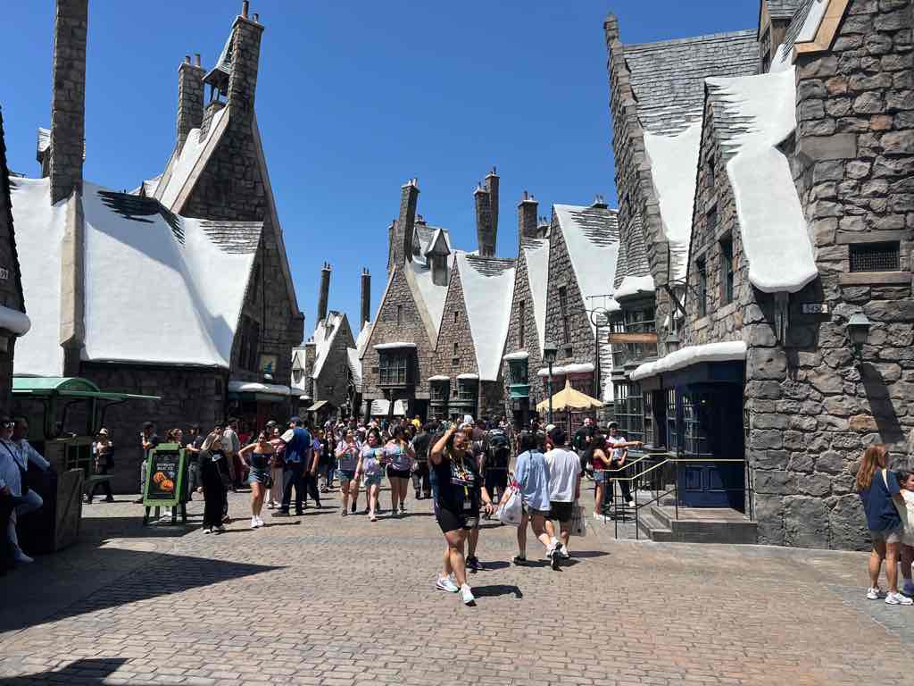 A Universal Studios Hollywood felső részén megbúvó Hogsmeade, a Harry Potter-rajongók egyik fő zarándokhelye, ahol a látogatók egy havas, köves utcájú „varázslófaluba” léphetnek be, miközben valójában Los Angeles felett süt a nap.