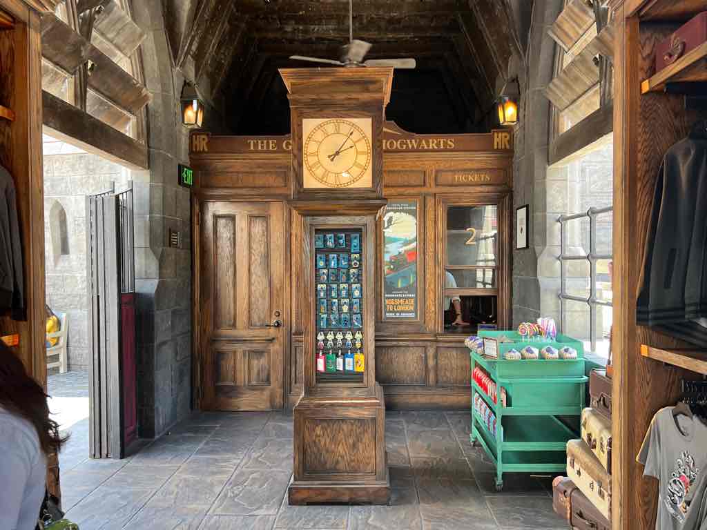 A látogatók egy hatalmas kőkapun és a Hogsmeade felirat alatt lépnek be a varázslóvilágba, ahol azonnal megpillantják a gőzölgő Hogwarts Express mozdonyt, amely az egyik legnépszerűbb fotóhelyszín. Bár Hollywoodban a vonat nem működő attrakció, a látvány, a gőz- és hanghatások, valamint a jelmezes személyzet segítenek azt az illúziót kelteni, mintha a Roxfort felé induló szerelvény peronján állnánk.