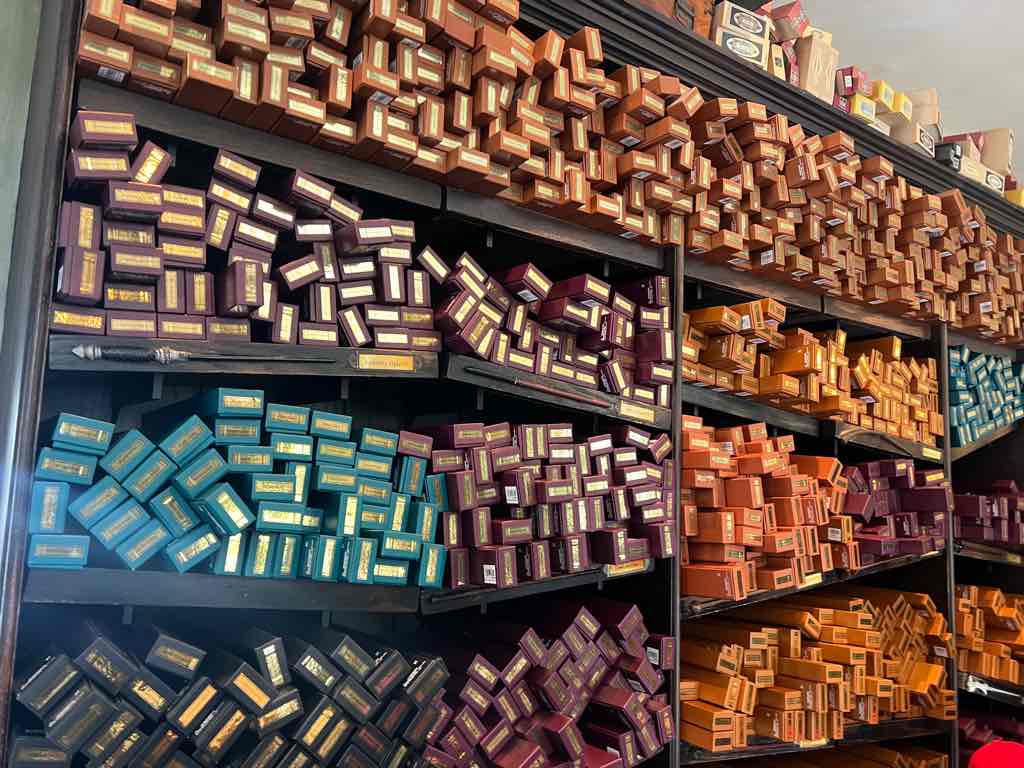 Az egyik legfontosabb megálló az Ollivanders pálcabolt, ahol egy rövid, színházi jellegű jelenet keretében „a pálca választja a varázslót”. Egy szerencsés vendég a közönségből személyre szabott pálcaválasztási ceremónián vesz részt, míg a többiek a polcokon sorakozó pálcadobozok rengetegét csodálhatják és a filmek szereplőihez kötődő replikákat vásárolhatják meg.